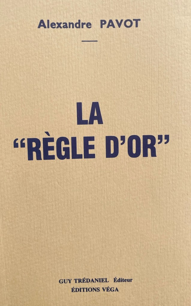 Ceux qui connaissent l’identité derrière le pseudonyme d’Alexandre Pavot et le contenu de ce livre écrit en 1932 comprendront le lien potentiel avec Antonin Artaud. Nous révélerons davantage d’informations sur l’ouvrage “La Règle d’or” dans la nouvelle version de notre livre “The Bachall Isou ou la canne de Saint Artaud”, actuellement en préparation. Cette nouvelle édition abordera le voyage d’Artaud en Irlande, la canne de Saint-Patrick, et les Nouvelles Révélations de l’être. Le livre, en cours de préparation, comprendra des dizaines de pages supplémentaires, de nombreux éléments inédits, ainsi que quelques corrections par rapport à la publication initiale. Pour en savoir plus sur ce livre (sa version originelle), consultez les chroniques de François Audouy et Pacôme Thiellement.