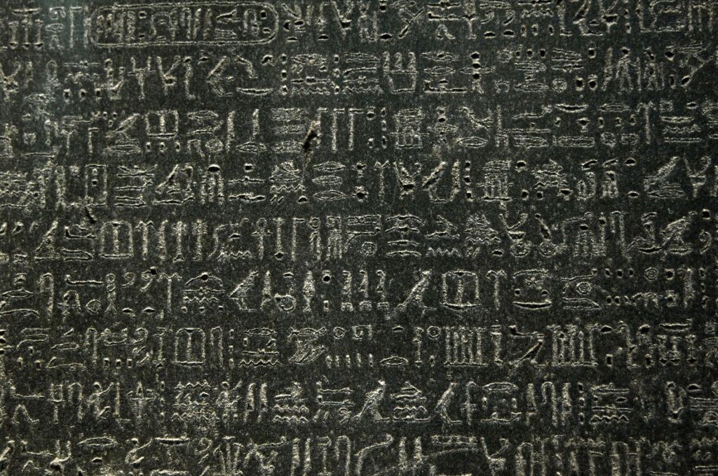 La référence aux hiéroglyphes de la Pierre de Rosette éclaire cette exigence de manière décisive. Historiquement, la Pierre de Rosette est célèbre pour avoir rendu possible le déchiffrement des hiéroglyphes grâce à la coexistence de plusieurs systèmes d’écriture. Mais ce n’est pas cette fonction de traduction qui retient Artaud. Ce qui l’intéresse, c’est la nature même du hiéroglyphe : un signe où la forme, l’image, la corporéité et la dimension spirituelle sont indissociables. Le hiéroglyphe ne renvoie pas à un sens extérieur à lui-même ; il est déjà porteur de sens par sa configuration, sa matérialité, sa densité. Il ne se contente pas de désigner : il met en mouvement une force, il opère.